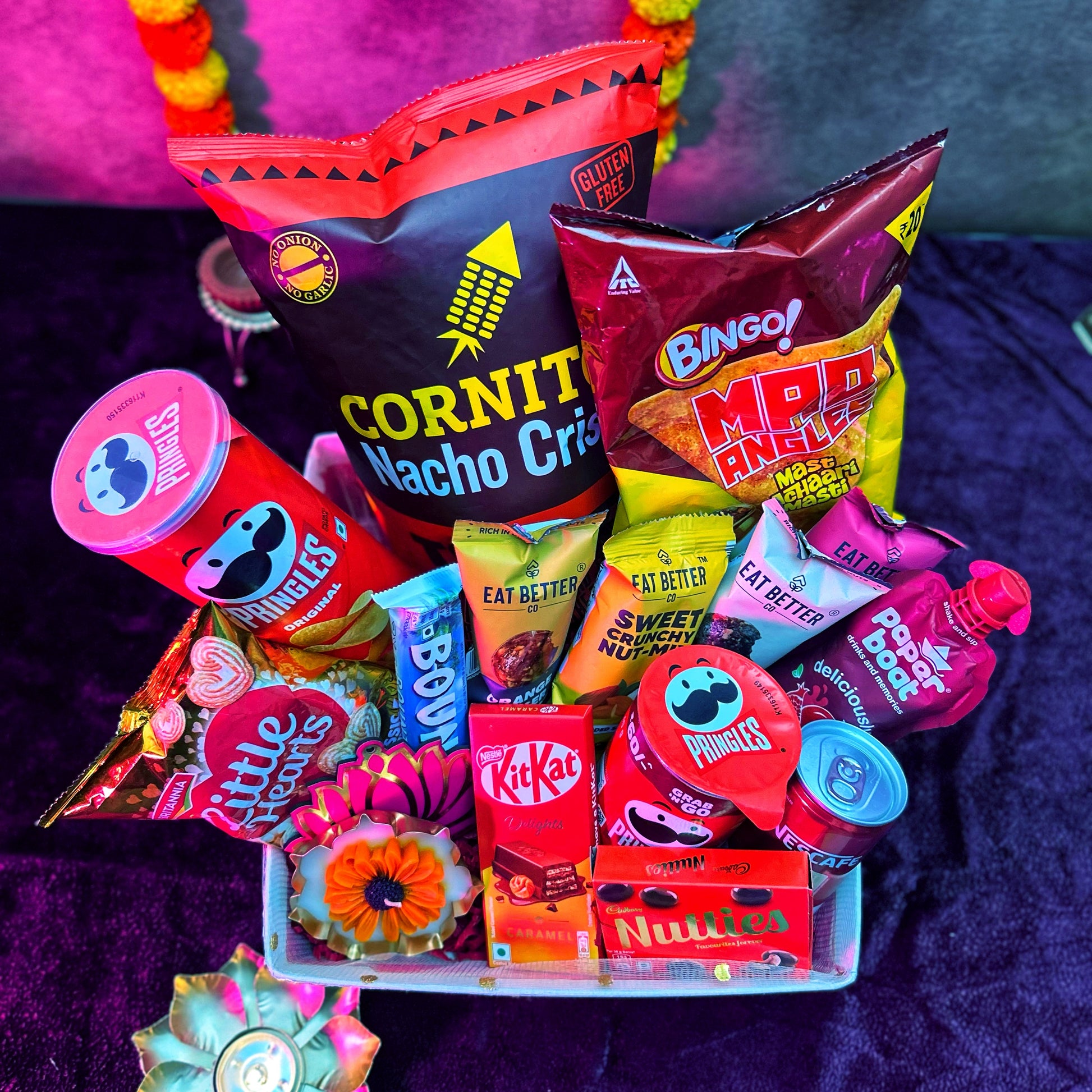 Indulge in royal flavours and festive charm with our Maharaja Bhog Gourmet Hamper. Packed with a delightful mix of snacks, chocolates, beverages, and décor, this hamper is designed to impress both the heart and the taste buds. Perfect for Diwali, weddings, housewarmings, or corporate gifting, it’s a gift that blends taste, tradition, and elegance.