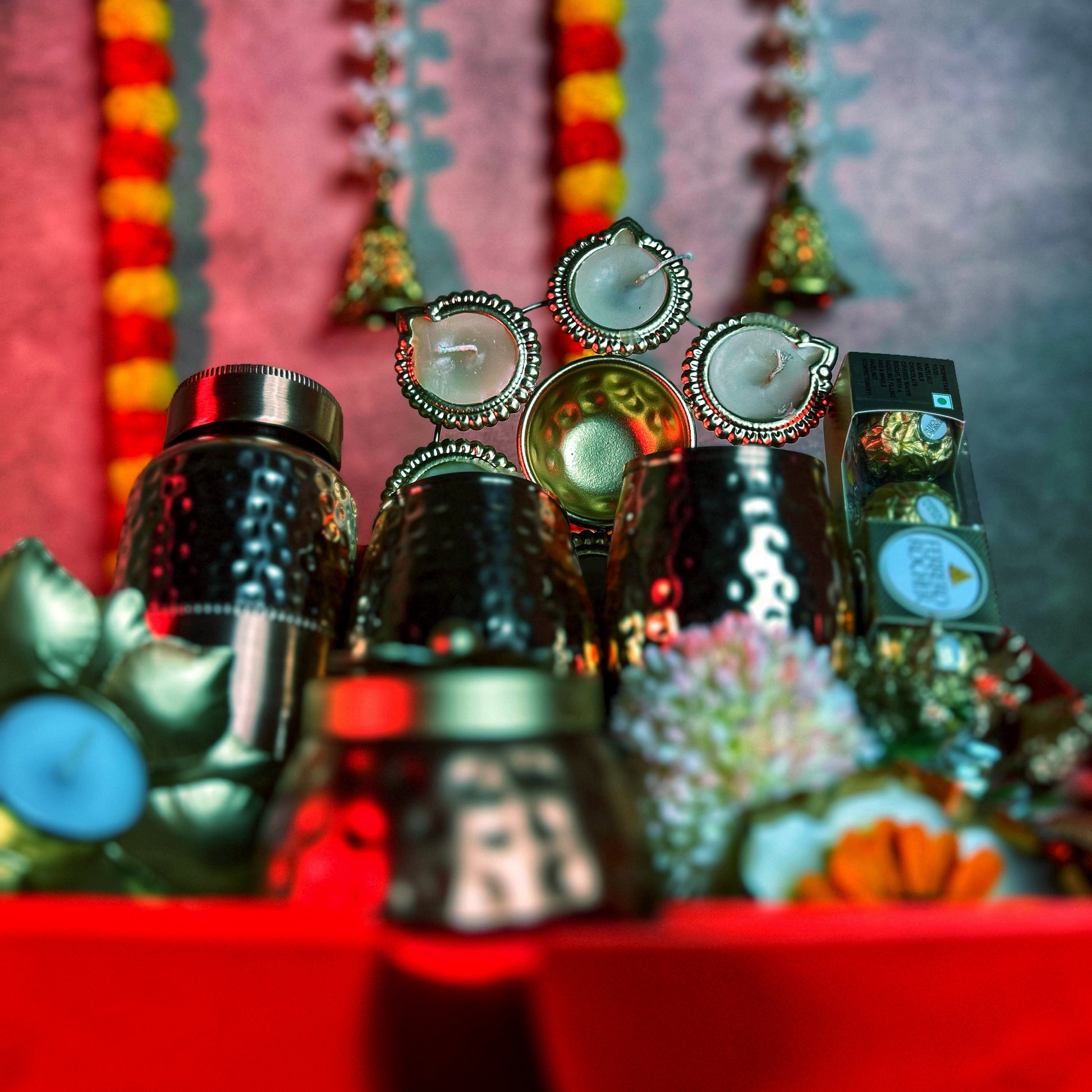 Celebrate the season of light and wellness with our Shahi Copper Essential Hamper. A regal combination of handcrafted copperware, festive décor, and gourmet delights, this hamper makes the perfect statement gift for Diwali, weddings, or corporate celebrations.